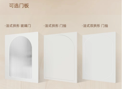 在造型上,恒潔繁花系列同樣兼具美學感與實用性。它提供豐富的門板樣式:法式拱形+長虹玻璃門、法式拱形門抽、法式雙拱門抽等,多樣的造型選項,既能滿足不同用戶的審美偏好,也能根據衛生間空間大小靈活適配,讓“好看”與“好用”不再沖突。